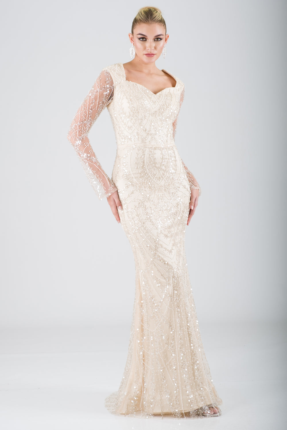 SİNTRA Ekru Abiye Elbise