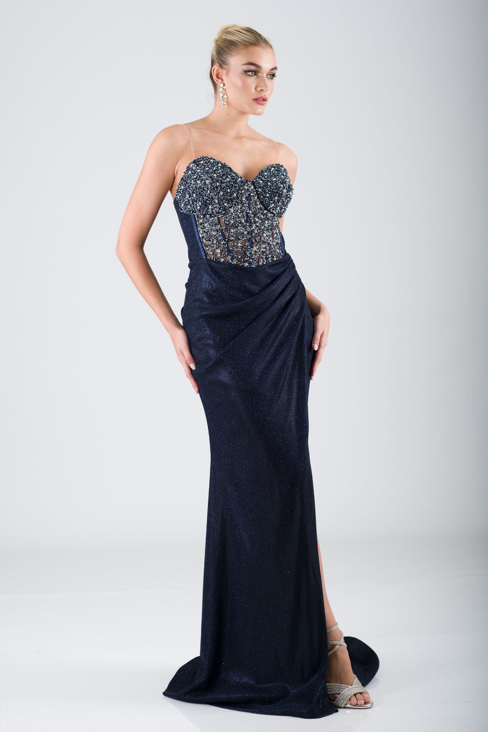 JOHRU Lacivert Abiye Elbise