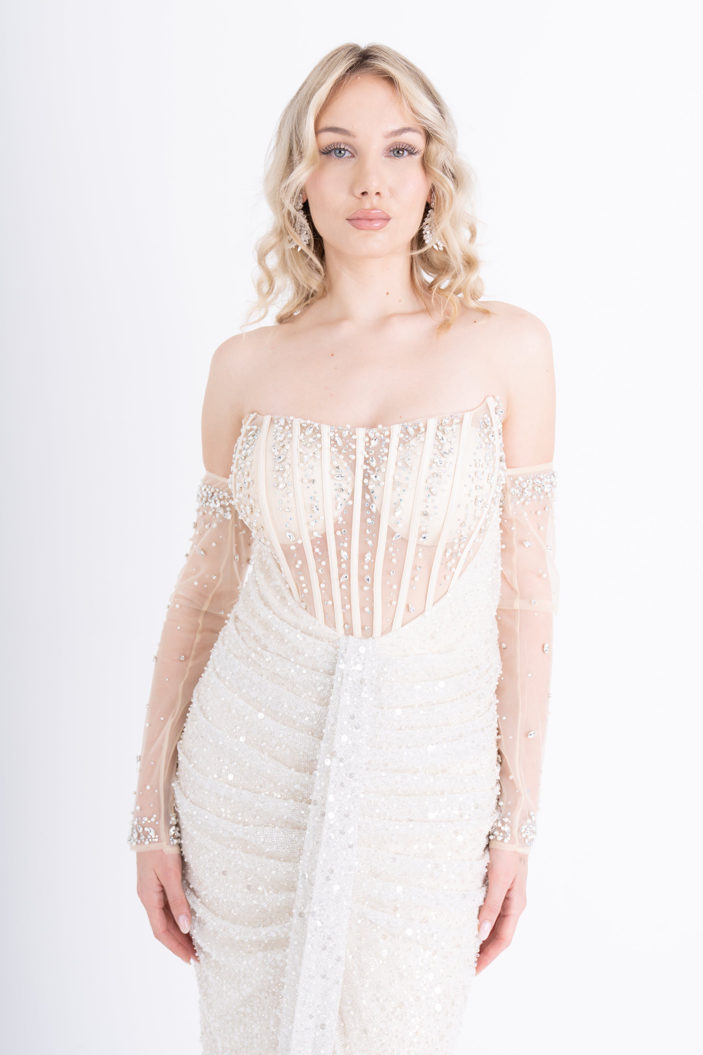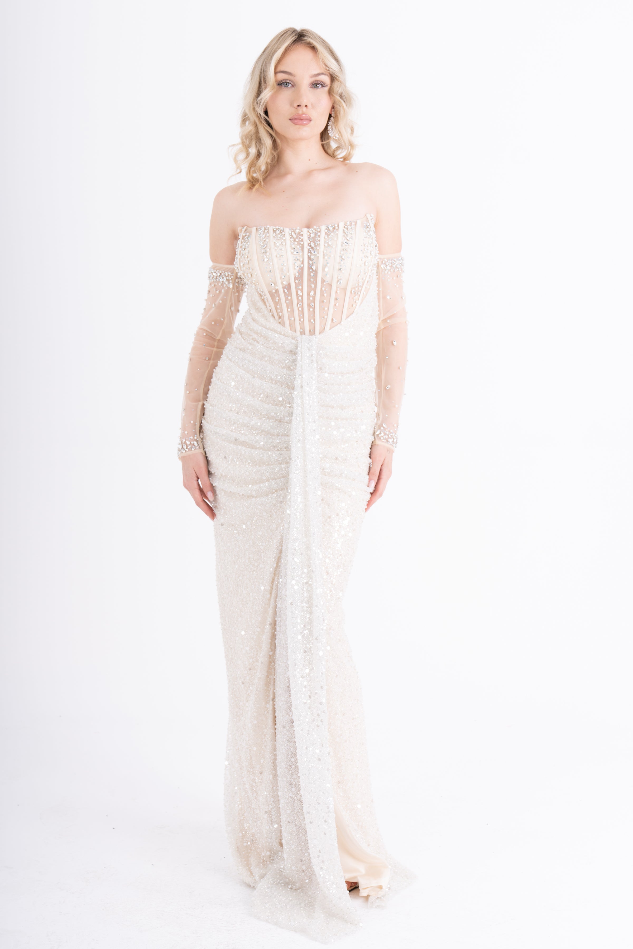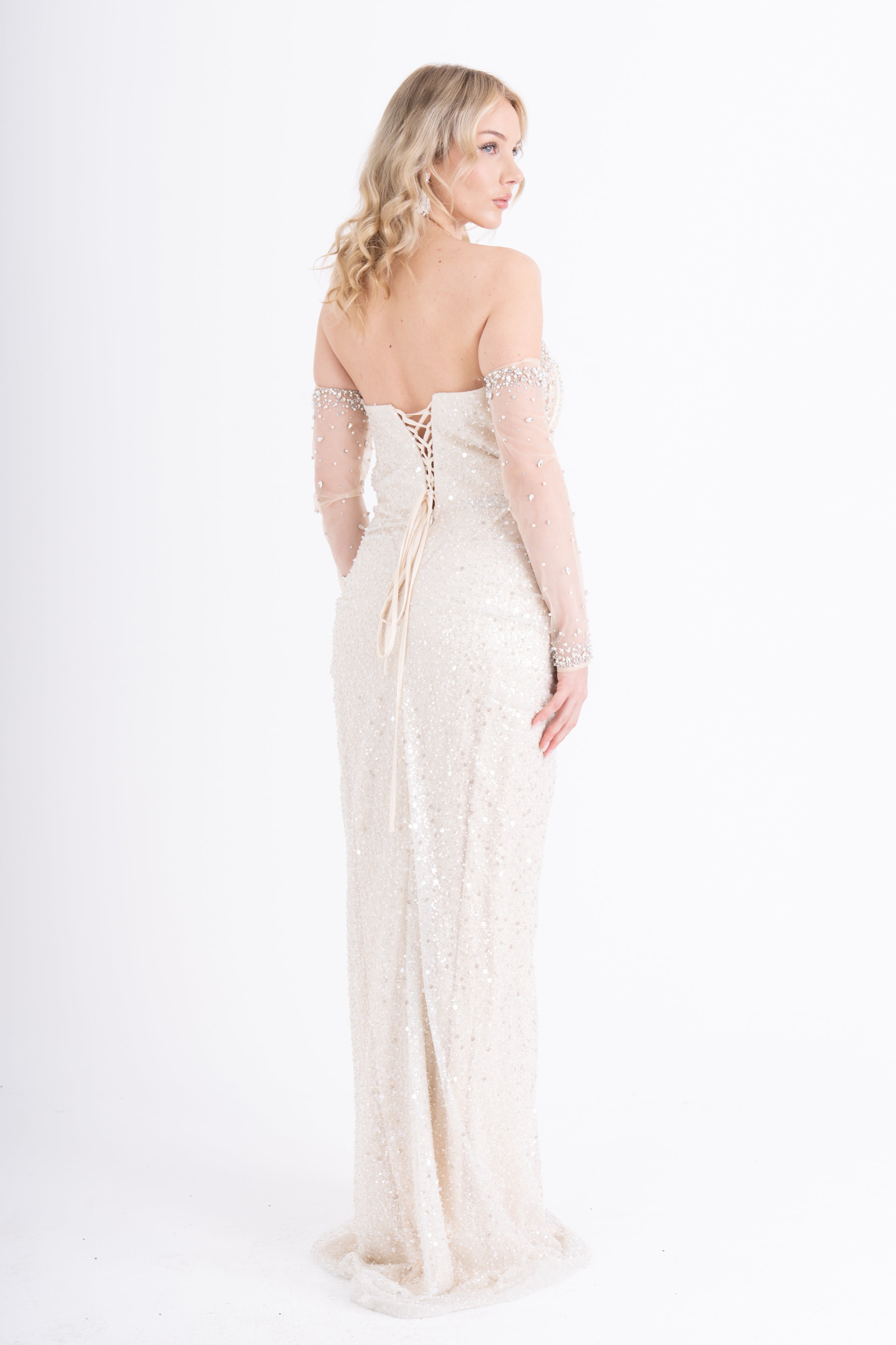 IKSUL Bej Abiye Elbise