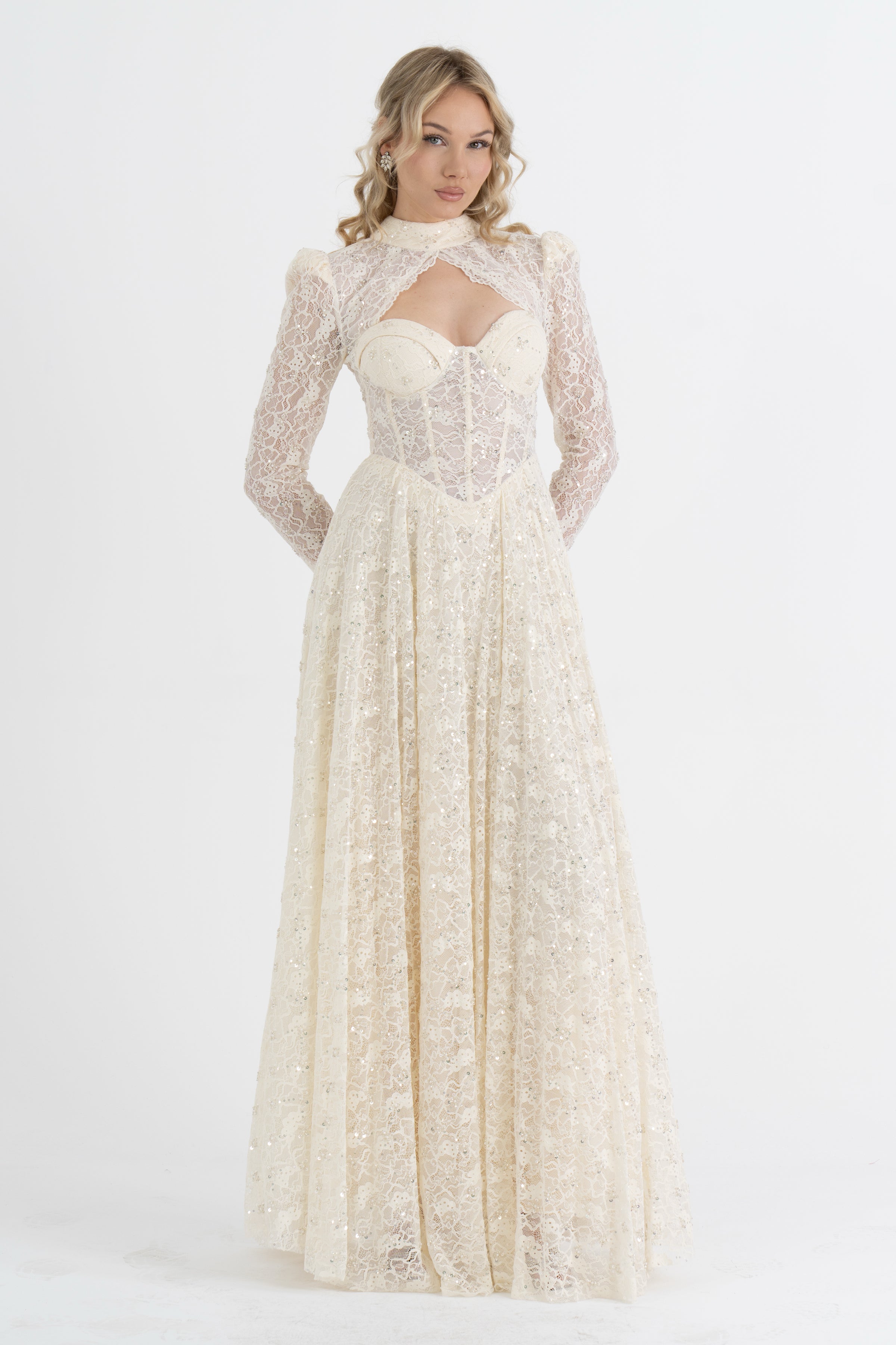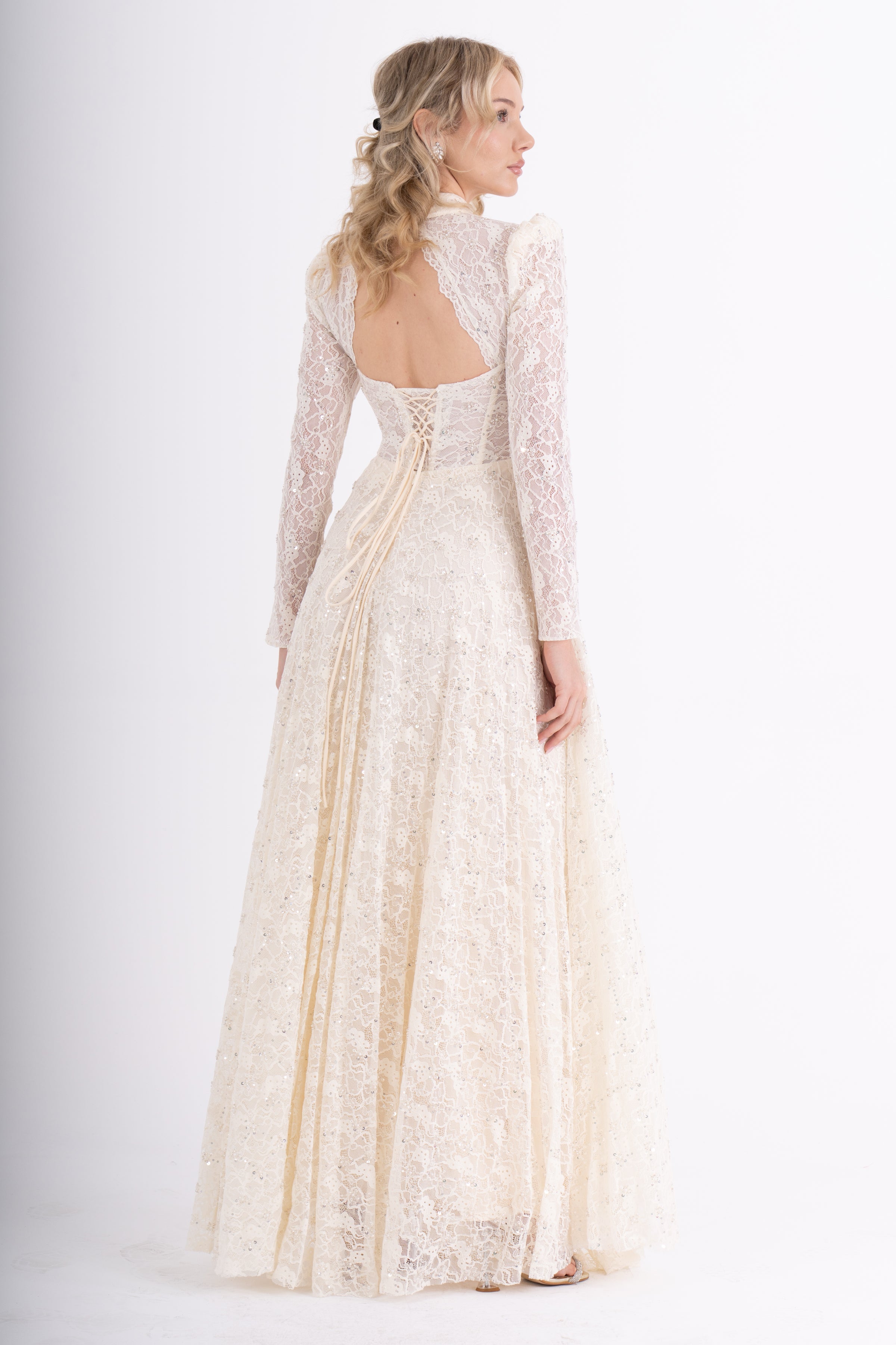 MORLYX Bej Abiye Elbise