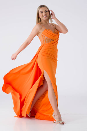 • ALDURA Turuncu Abiye Elbise