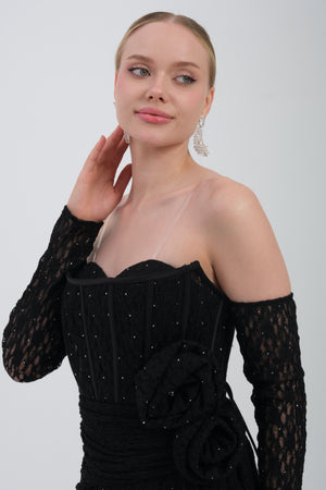 CAELİNA Siyah Abiye Elbise