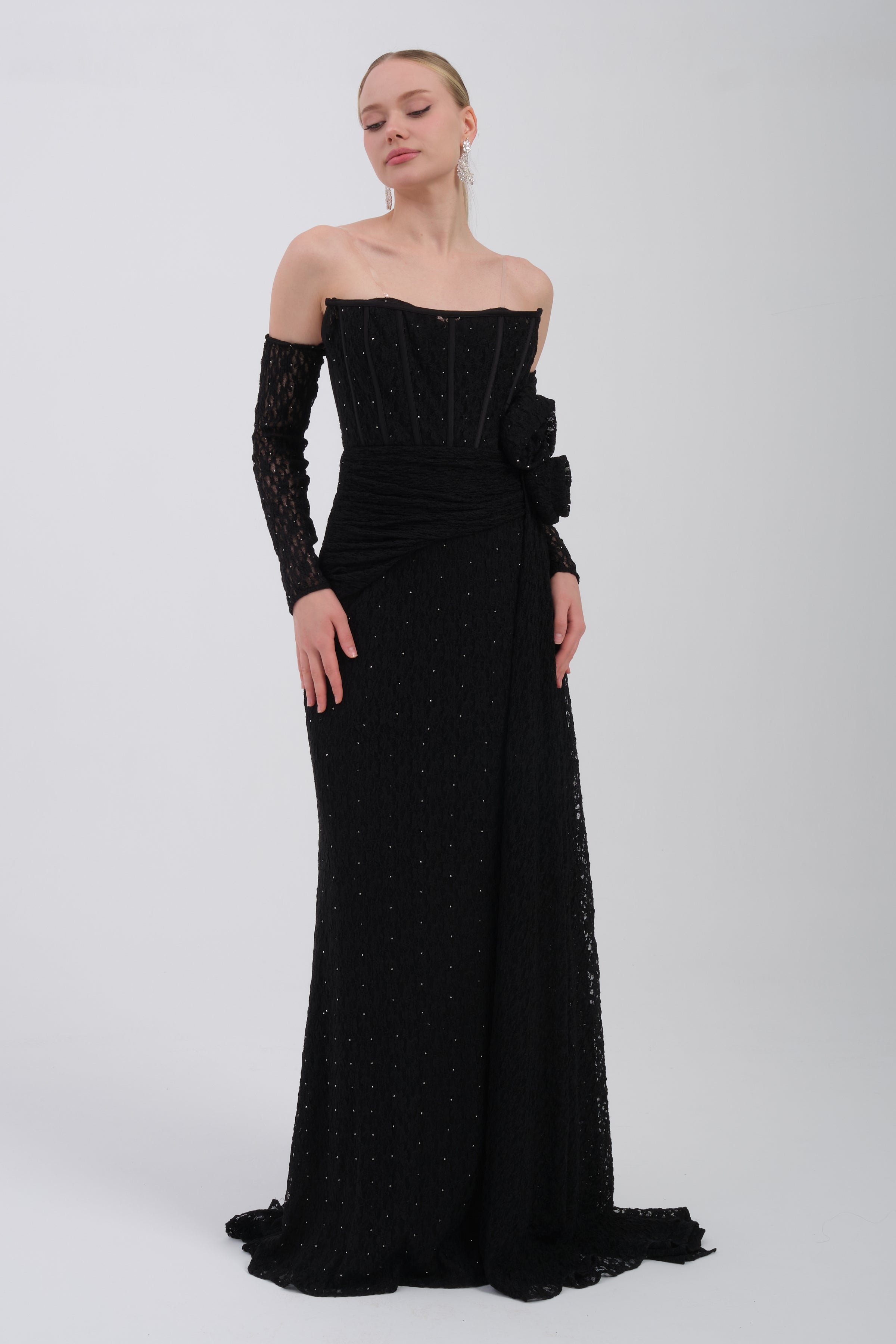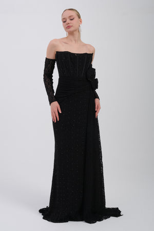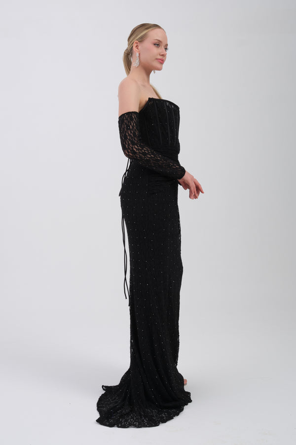 • CAELİNA Siyah Abiye Elbise