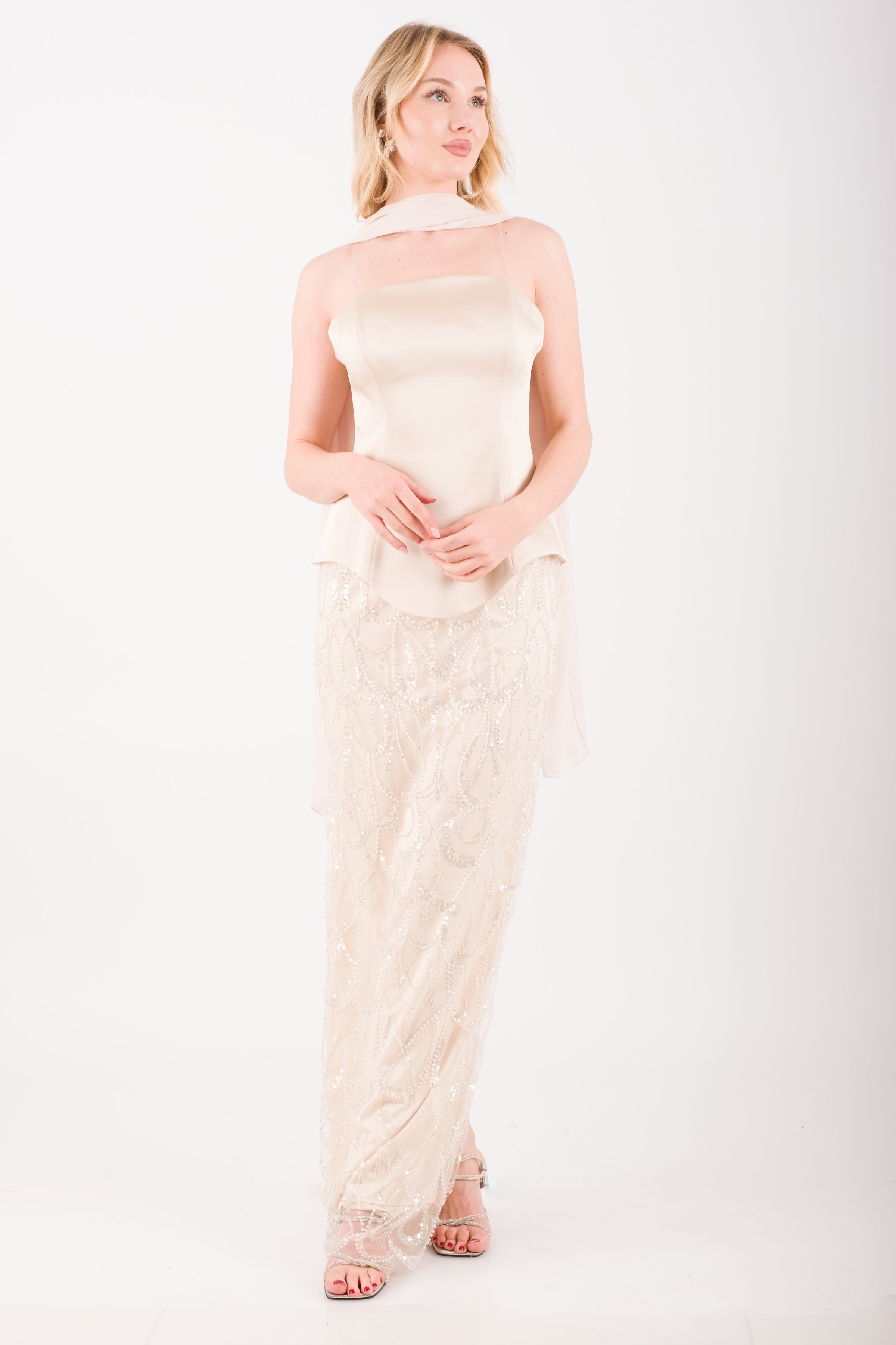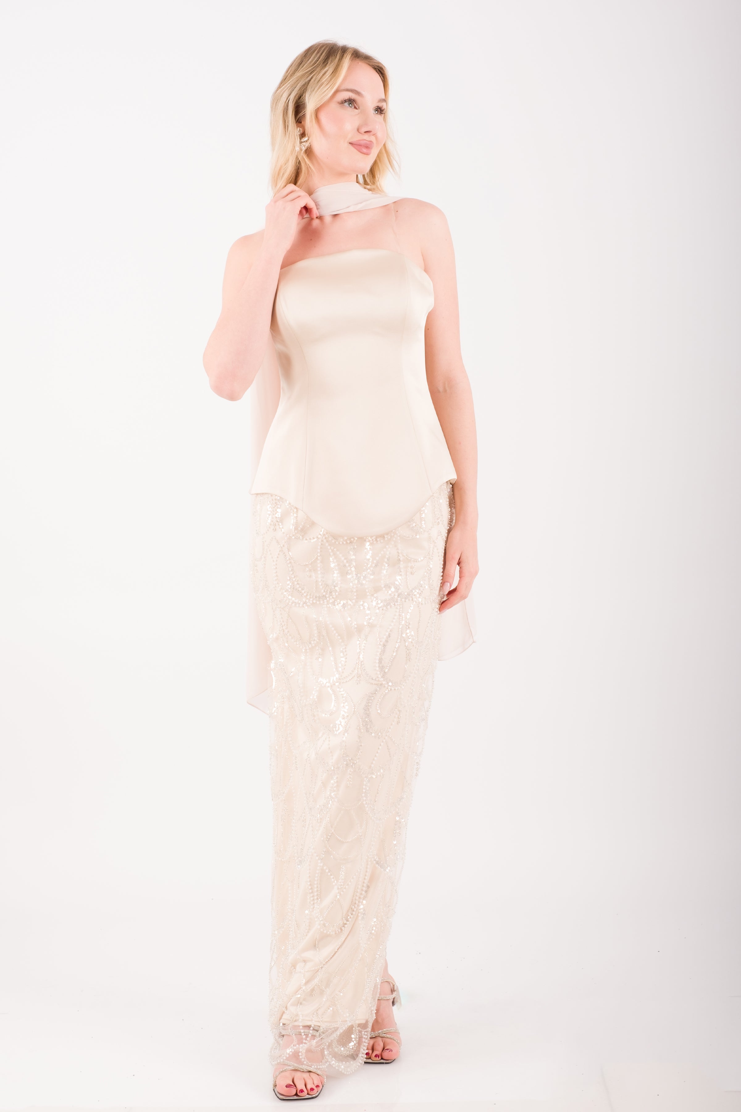 • LISBON Bej Abiye Elbise