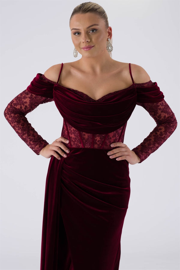 • JÜPRA Bordo Abiye Elbise