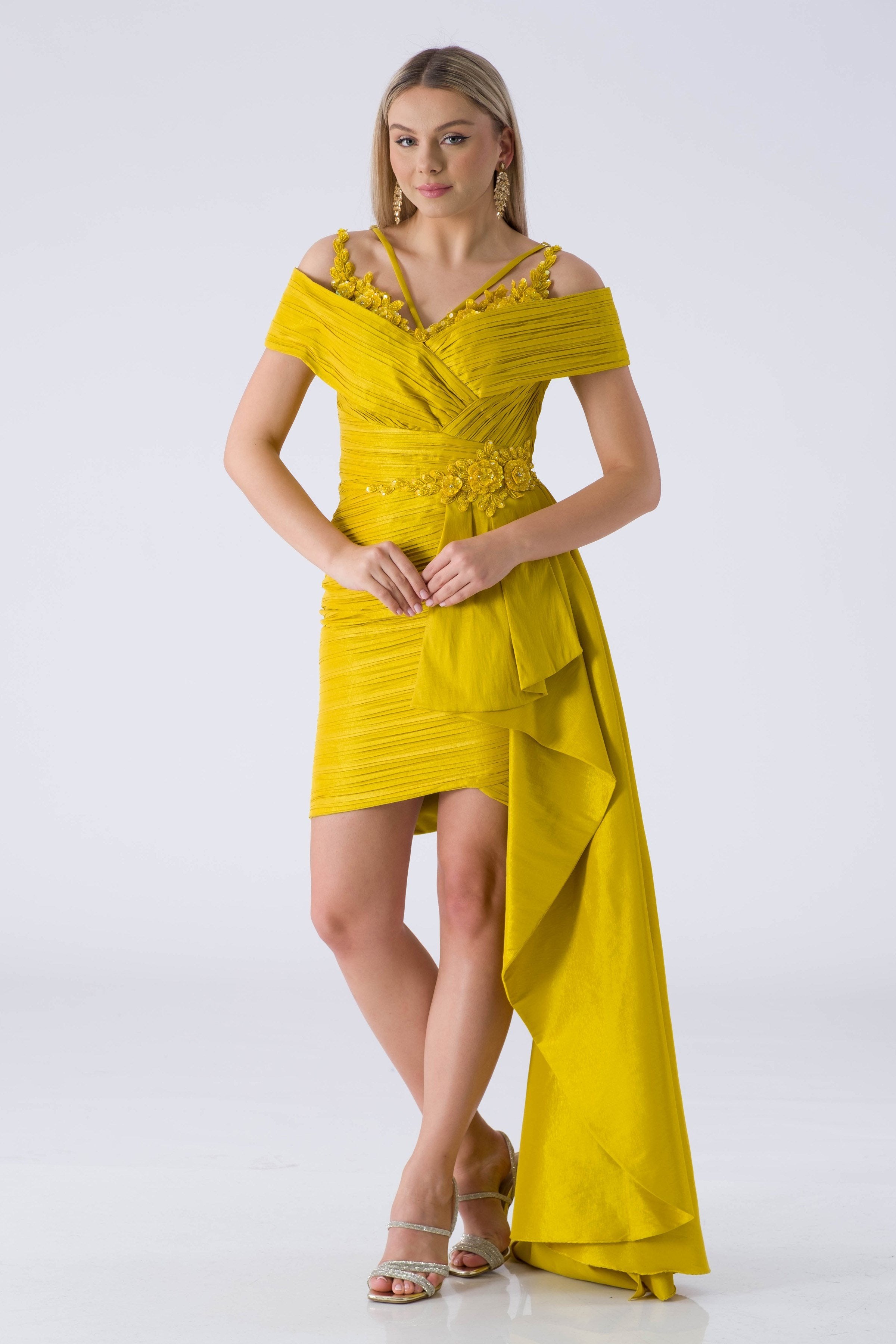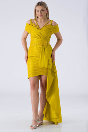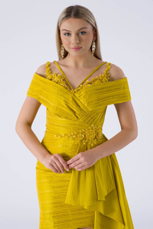 • ZENGVO Fıstık Yeşili Abiye Elbise