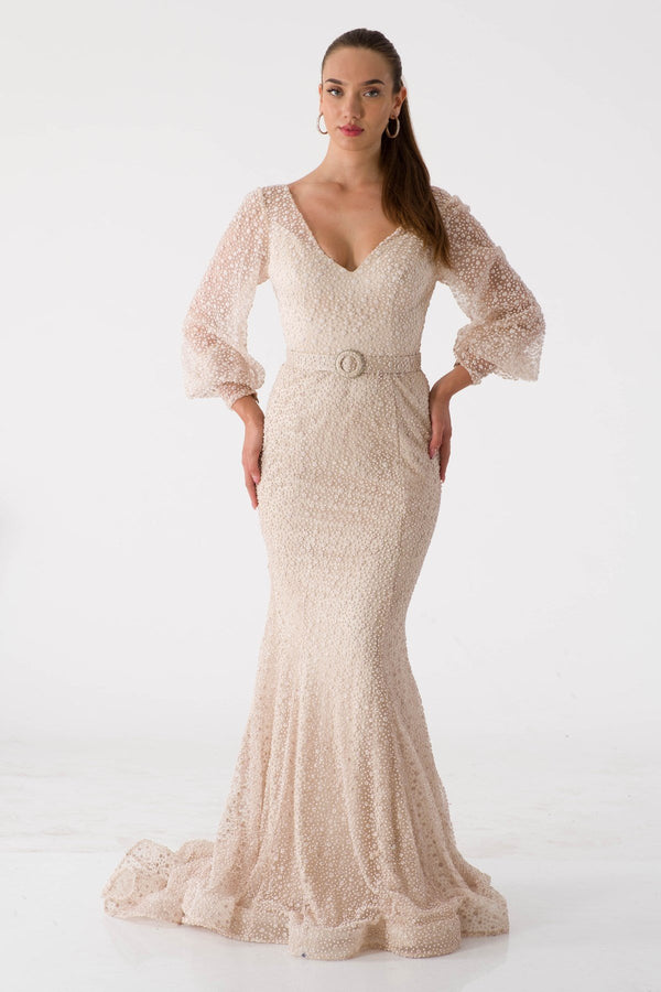 Платье с бежевым дождем